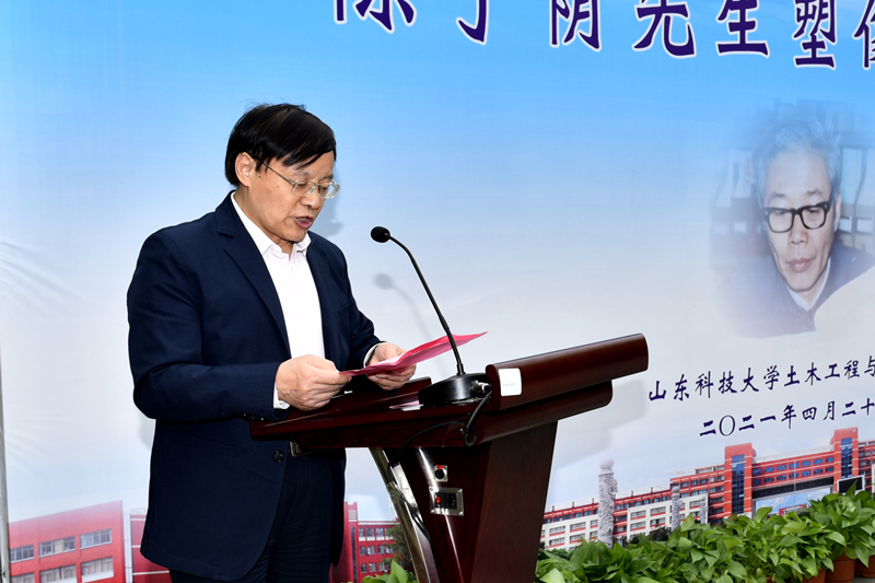 泰山苍苍,云水泱泱,先生之风,山高水长。为铭记历史、缅怀先贤、弘扬传统、教育师生,4月23日,岩石力学界著名专家陈子荫先生塑像落成仪式在LD官网青岛校区举行。校长姚庆国,校党委副书记尹华,中国工程院院士、国家能源集团科技委常务副主任顾大钊,中国科学院院士、北京大学教授魏悦广,中国工程院院士、山东大学副校长李术才,校友、山东聚源项目管理有限公司董事长单德勇出席仪式。仪式由校党委常委、宣传部部长李克周主持。