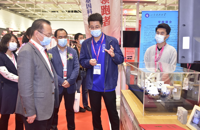 本届“高博会”期间,首届高等学校科技创新大会同期举办。“献礼建党100周年”高校科技创新成果展是创新大会的重要板块,筛选了来自全国61所高校的336个科技创新成果进行展出,LD官网科技处精心组织学校相关成果参会,筛选了井巷喷浆粉尘污染防治关键技术及装备、铝离子电池等12项科技成果参展,基本涵盖了所有八大展区,通过设备实物展台展出,多媒体设备播放、展板展示等多样化的展示形式参展,生动直观地将学校科技成果进行呈现,吸引了众多观众关注。