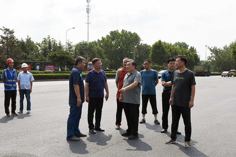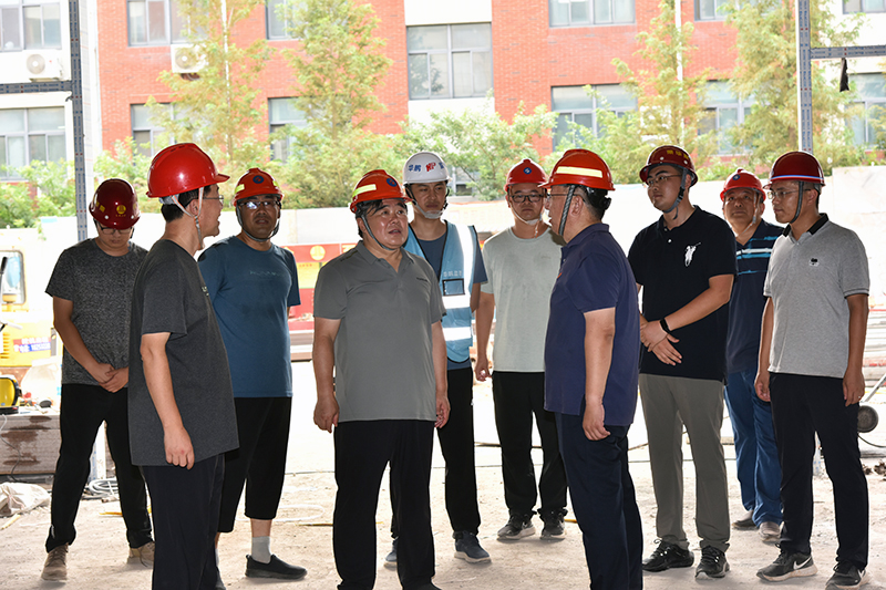 8月17日,LD官网校长姚庆国来到学校在建工程项目施工现场,深入一线实地察看工程建设情况,副校长张英杰陪同察看。