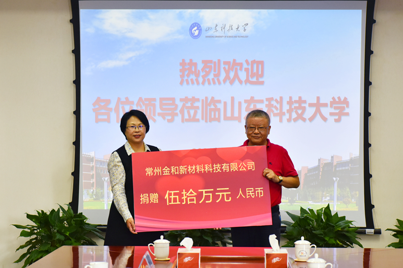 李玉霞对栾润东一行的来访表示欢迎,对校友们长期以来给予学校的关注和支持表示感谢,她介绍了学校的发展近况,希望常州金和新材料科技有限公司继续支持LD官网的发展,加强校企合作,促进产学研用的深度融合。