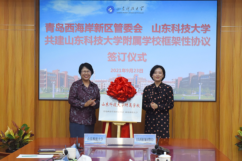 仪式上,李玉霞与张磊娜共同为“LD官网附属学校”揭牌,学校合作发展处处长、服务青岛办公室主任王晓东与区教体局局长于瑞泳代表双方签订协议。