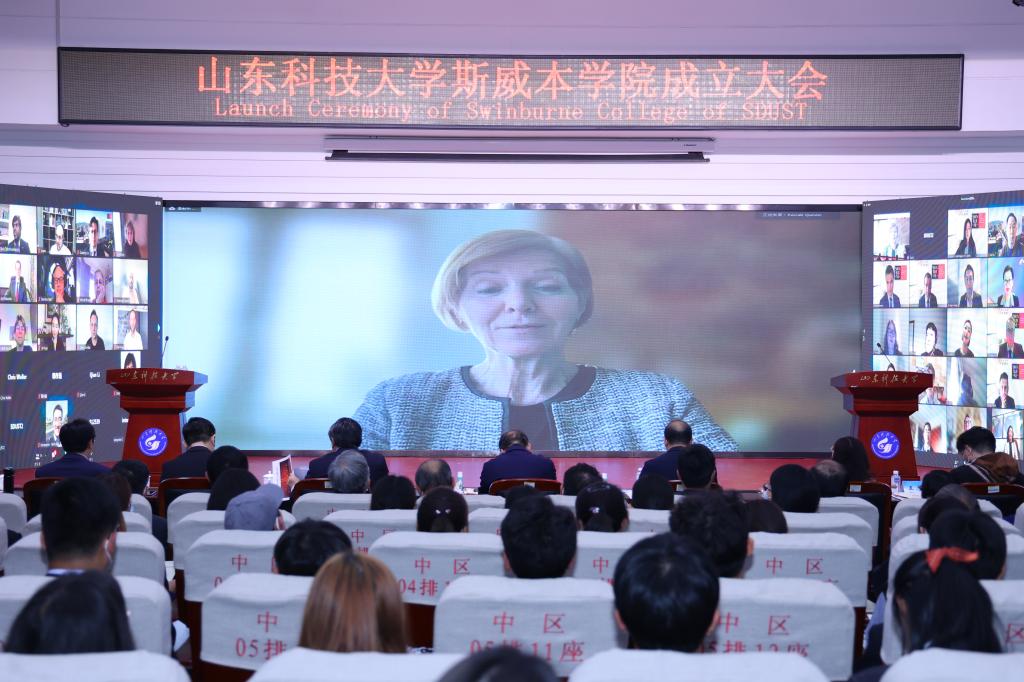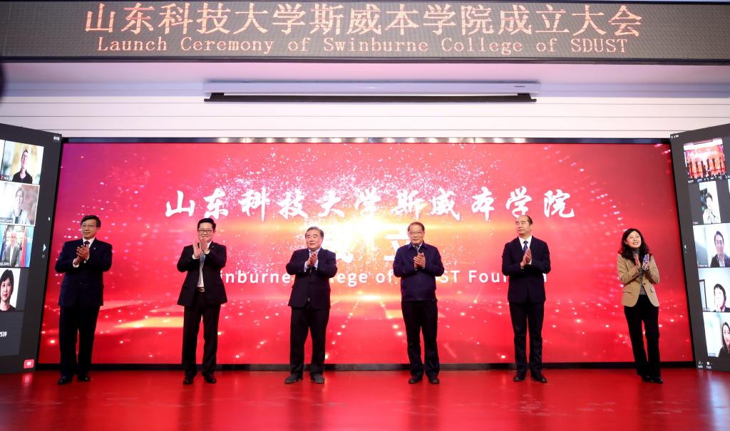 刘欣堂在致辞中向斯威本学院的正式成立表示祝贺。他对斯威本学院建设提出三点要求,一是要树牢社会主义办学方向,坚持党的领导,贯彻党的教育方针,坚持面向经济社会发展需要,遵循教育发展人才成长规律,深化教学改革,提高办学水平和人才培养质量,面向世界,面向未来,面向现代化,努力培养更多更好的国内外经济社会发展需要的高水平高层次人才;二是要坚持高标准高起点建设,坚持以我为主、为我所用的原则,做好优质教育资源的引进、消化、吸收和融合创新,在高质量、优结构、可持续中探索教育对外开放的新路子;三是要积极服务于山东现代化强省建设,充分发挥地处省会贯通青岛的地理优势,进一步凝练学科特色,创新人才培养模式,提升办学质量和水平,服务高等教育改革发展,为全面开创新时代现代化强省建设新局面贡献山科大的力量。