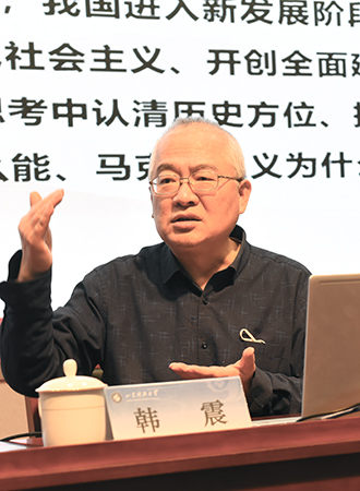 韩震在宣讲中指出,当今世界正经历百年未有之大变局,我国进入新发展阶段,我们党要团结带领人民在新时代坚持和发展中国特色社会主义、开创全面建设社会主义现代化国家新局面,需要在对历史的深入思考中认清历史方位、把握历史规律,教育引导全党深刻认识中国共产党为什么能、马克思主义为什么行、中国特色社会主义为什么好。