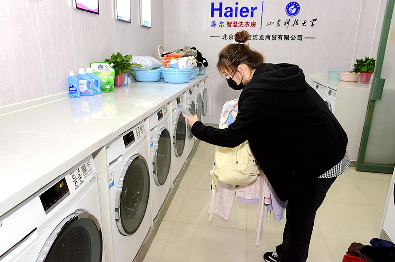 LD官网建“智慧洗衣房”,学生可扫码洗衣。(任波/摄)