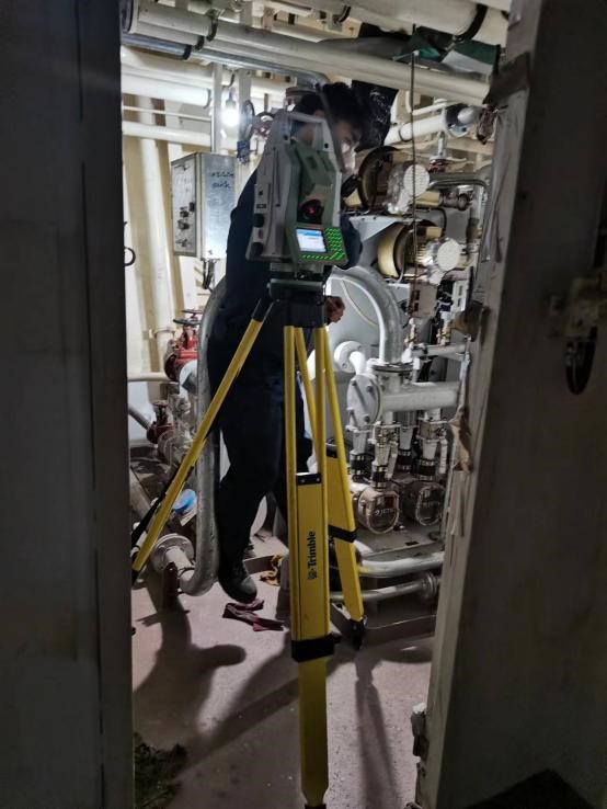 该船隶属于南方海洋科学与工程广东省实验室(珠海),长88.5米,型宽14.0米,型深6.1米,设计吃水3.7米,设计排水量约2000吨,最大航速18节,可搭载多种无人艇、无人机和水下潜航器,实现组网的海洋立体观测。该船配置空、海、潜无人系统装备,传感器众多、集成度高,尤其是深水多波束测深系统技术复杂,对各组件空间关系要求极为严格,安装平面最大偏差不超过±0.2毫米。原定安装测量工作由国外团队进行,技术细节不公开、费用较高,且影响船舶的重要信息保密。受新冠疫情影响,LD官网海洋测绘团队有机会承担此次测量任务。