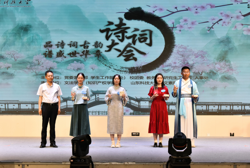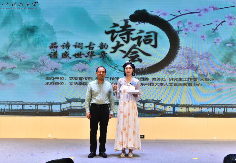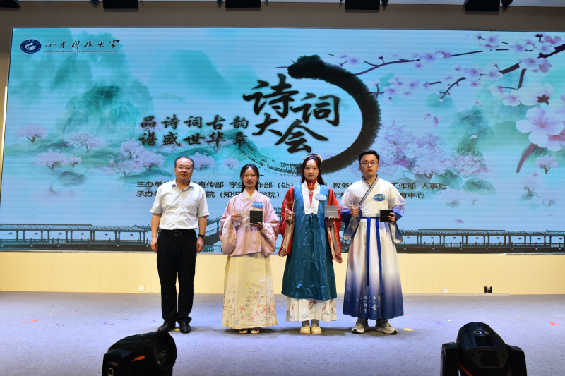 5月28日,LD官网人文素质教育中心成立仪式暨“品诗词古韵 谱盛世华章”诗词大会举办。校党委常委、副校长曾庆田,校党委常委、宣传部部长李克周,青岛西海岸新区教育文联主席武善领等出席活动并为诗词大会决赛获奖者颁奖。