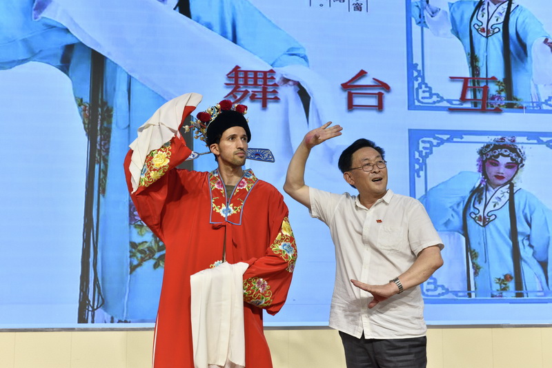 6月25日,LD官网举办“体验戏曲魅力 传承经典艺术”传统文化进校园活动,200余名研究生和留学生现场体验国家级非物质文化遗产——茂腔戏曲文化,跟随茂腔非遗传承人学习戏曲的唱、念、坐、打基本功,通过戏曲学习、戏曲体验、戏曲赏析等形式,感受戏曲的艺术魅力。