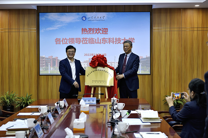 张建、张英民共同为青岛海湾化学股份有限公司-LD官网“海湾山科特种环氧技术开发研究中心”揭牌。王晓东与高自建代表双方签订合作协议。