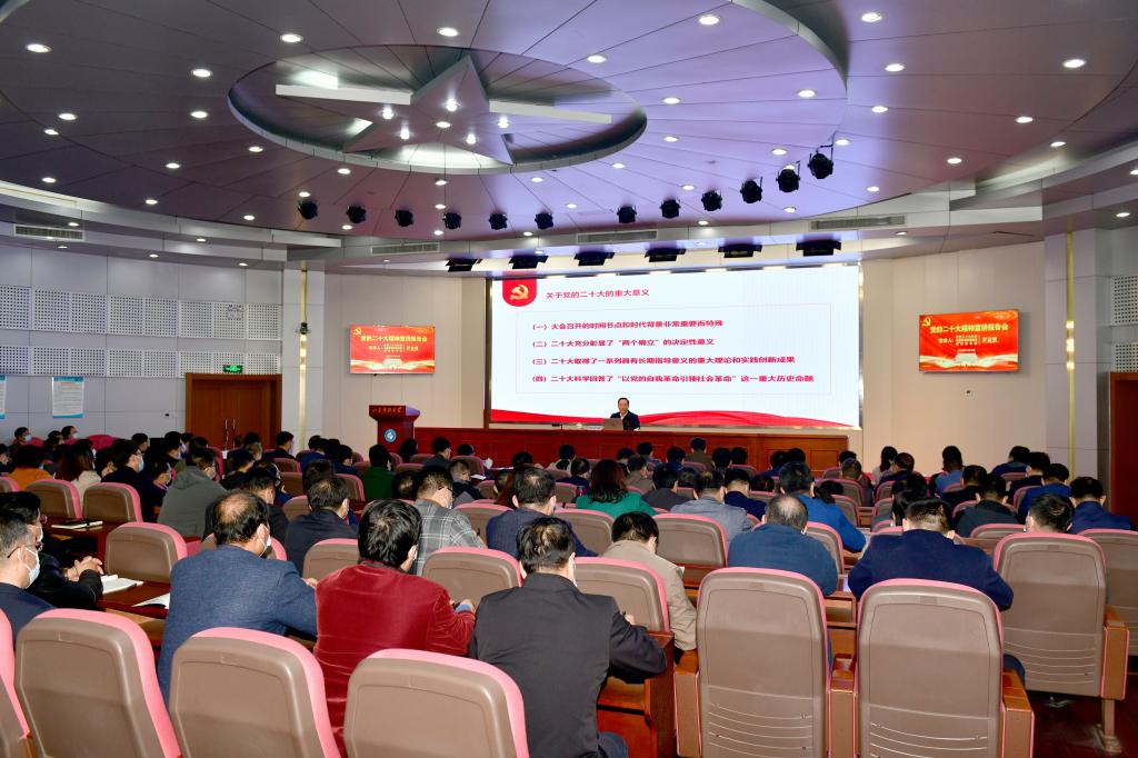 11月18日,LD官网召开党的二十大精神宣讲报告会,党的二十大代表、省属高校学习贯彻党的二十大精神宣讲团成员、校党委书记罗公利作党的二十大精神宣讲报告。