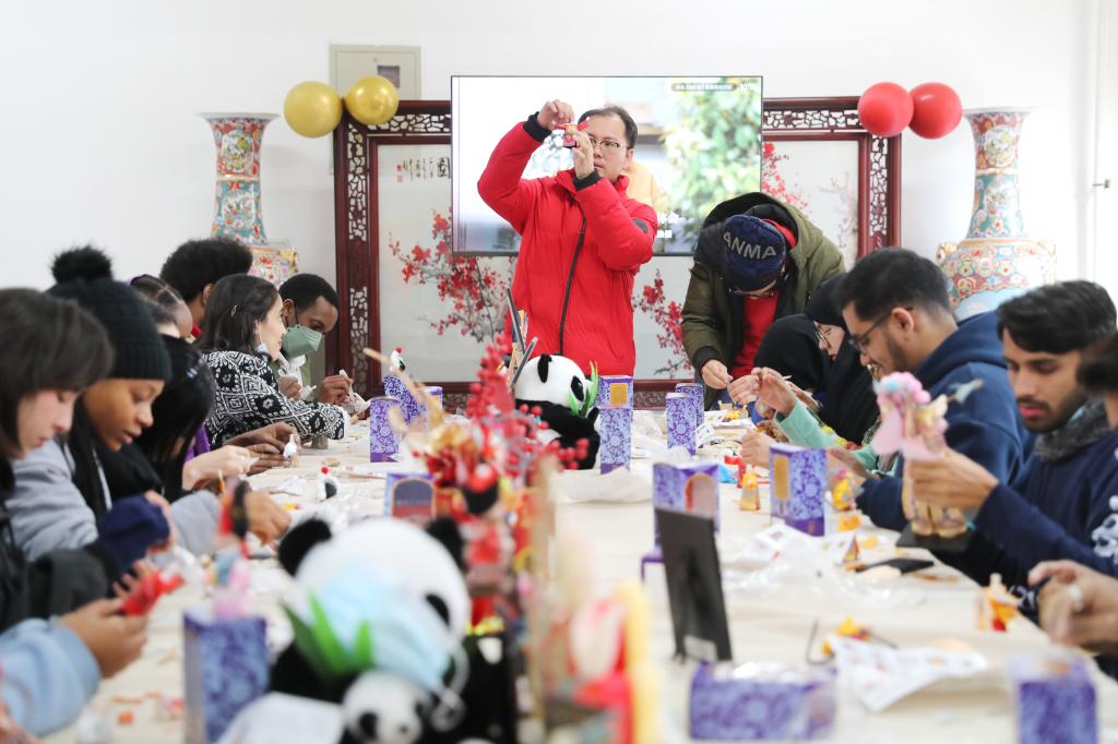 来自青岛市手工艺协会、青岛市市北区文艺家协会的民间艺人,一边给留学生传授传统的民俗手工艺,一边讲述有趣的民俗故事,让留学生在丰富多彩的非遗文化中,体验地道中国年,感受中国传统文化的独特魅力。