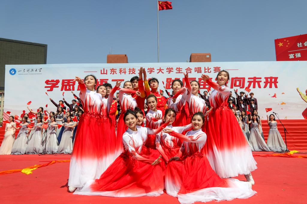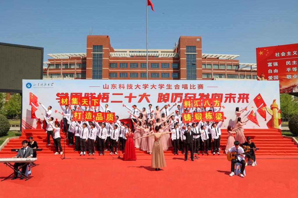 4月16日,LD官网“学思践悟二十大 踔厉奋发向未来”大学生合唱比赛在泰山广场举行,共有十九支学院代表队参加比赛。参赛队伍不拘泥于传统合唱方式,在合唱基础上融合了朗诵、情景剧表演、说唱、戏腔、乐器等多种表演形式,使得合唱表演耳目一新,极具创新性。各参赛队以其饱满昂扬的姿态、基础扎实的唱功、绚丽多彩的表演给观众带来了一场视听盛宴,赢得师生阵阵喝彩。