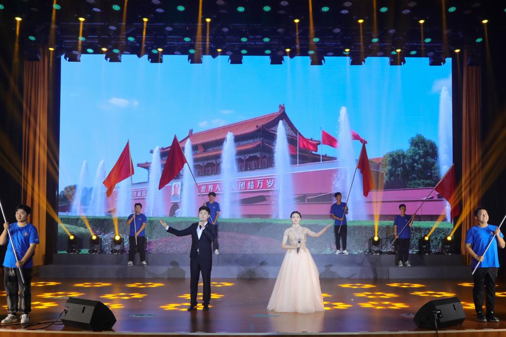 歌舞《一路都是歌》拉开了晚会序幕。晚会节目充分展现了年轻人追梦路上的执着与热忱,表达了山科师生对党和祖国的真挚告白。歌伴舞《灯火里的中国》,温情演绎了灯火里的美好生活;一首《党旗飘扬的方向》唱出了山科青年听党话、跟党走的坚定决心;鼓声轰响,歌曲《山河图》在器乐烘托下唱出了万里山河的气势磅礴;由分团委书记和新生合唱的《我爱你中国》真情流露出师生对祖国的无限热爱和美好祝福。