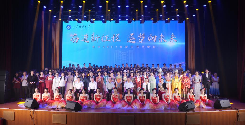 当回首学校七十多年发展路的音诗画《山海泉的故事》在台上展现,台下新一代科大人的掌声经久不息。山科学子信心百倍,在歌曲《光亮》中立志为校增光添彩,在《今天我想对你说》中高喊出青春宣言。晚会在歌伴舞《再一次出发》中落下帷幕,为2023级新生献上新征程启航的祝福。