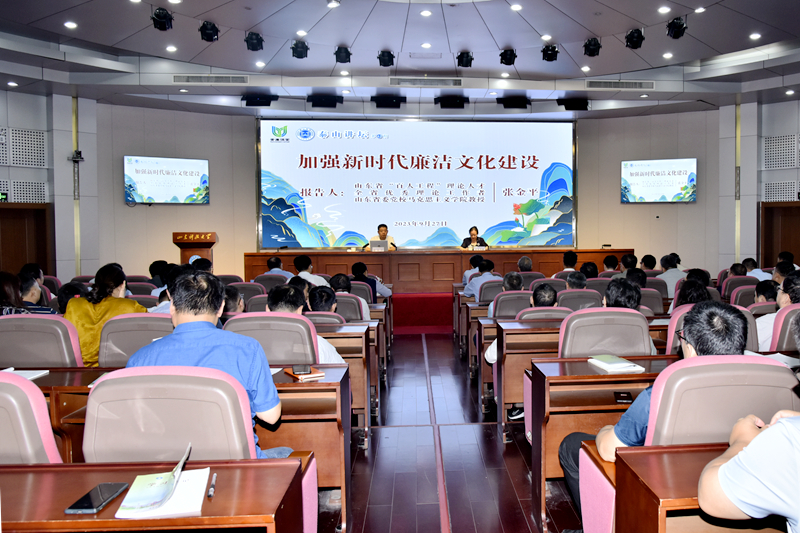 9月27日,LD官网第42期“泰山讲坛”暨青廉课堂在逸夫讲堂开讲。山东省“百人工程”理论人才、中共山东省委党校(山东行政学院)张金平教授为全校干部上了一堂生动的“加强新时代廉洁文化建设”课,引导广大党员干部拧紧“总开关”,筑牢拒腐防变的思想防线。党委常委、纪委书记夏侯雪娇主持。党委常委、宣传部部长李克周参加。学校中层以上干部(含学术院长、学术副院长)、机关科级干部、全体学生工作干部参会。