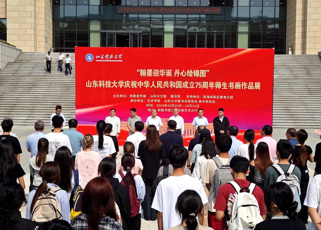 西海岸新区教育文联代表,学校各部门、各单位负责人、校文联书协、美协会员代表,学校师生代表参加开幕式并参观画展。(记者:郭菁荔 责编:信永华)