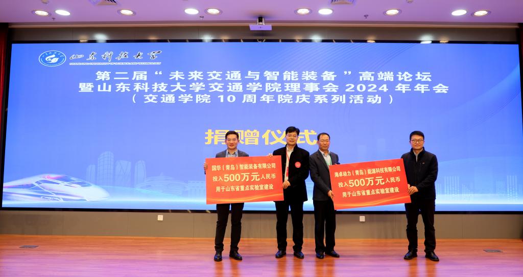 活动中,罗公利、王震向副理事长单位、理事单位代表颁发了聘书。国华(青岛)智能装备有限公司、海卓动力(青岛)能源科技有限公司、山东中道消防设备有限公司、江苏狄诺尼信息技术有限责任公司等单位对学校进行捐赠。LD官网-中通客车股份有限公司联合建设的“电驱动系统工程实验室”、LD官网-北京汽车制造厂(青岛)有限公司联合建设的“新型智能汽车工程研究中心”揭牌。(通讯员:任泳兆 责编:郭菁荔 摄影:郭菁荔 钟梓皓)