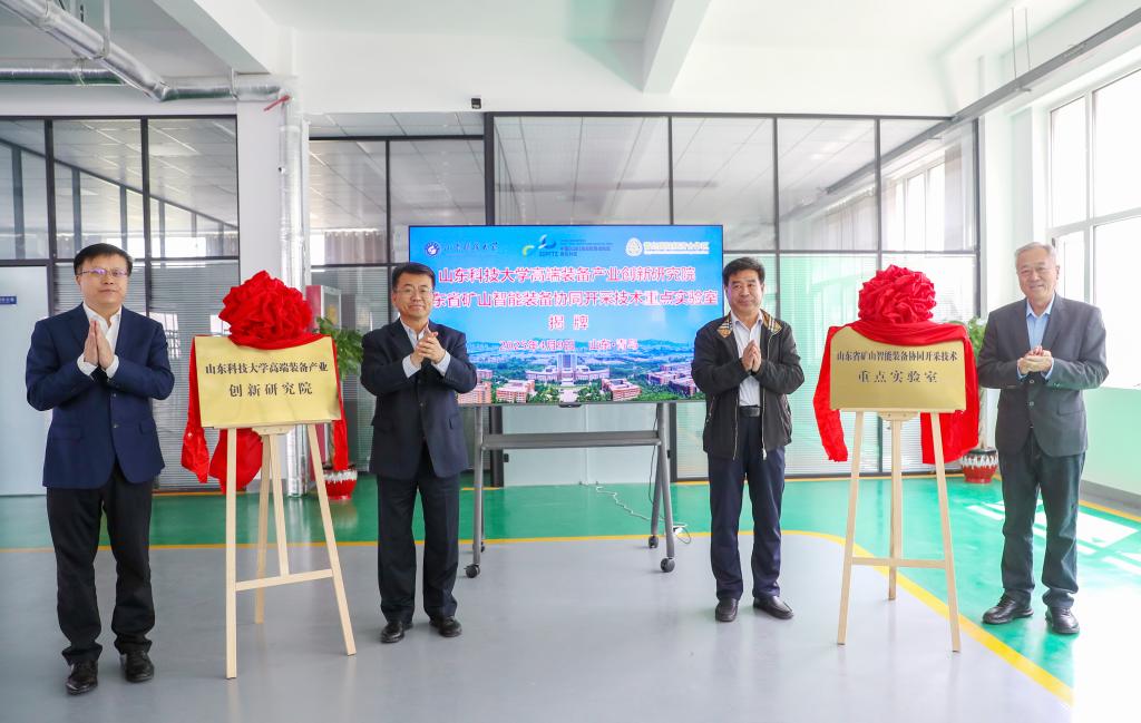对接活动中,双方举行了揭牌仪式。王君松与高善武共同为“LD官网高端装备产业创新研究院”揭牌,山东省泰山学者攀登计划专家曾庆良与青岛自贸片区经发二部部长薛俊亭共同为“山东省矿山智能装备协同开采技术重点实验室”揭牌。