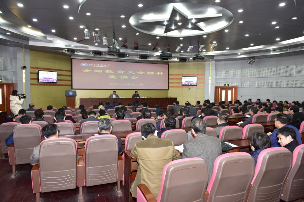 12月4日,LD官网举行全国教育大会精神宣讲会,校党委书记罗公利围绕充分认识全国教育大会的重要意义、深刻学习领会习近平总书记关于教育的重要论述、全面确保大会精神落地落实三个方面作了专题宣讲,为广大干部教师上了一次生动的党课。