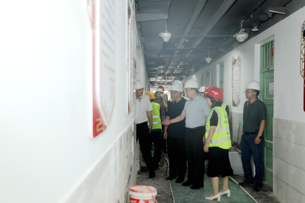 王君松先后前往南门值班室、图书馆北门西侧绿化带、学苑餐厅、学生公寓B2-4改造项目、在建B1、B5学生公寓等看望慰问在岗职工,详细询问各岗位工作情况,叮嘱他们要注意劳逸结合,做好防暑降温工作。他表示,开学在即,相关部门要进一步细化工作安排,牢记安全生产责任,积极推进各项工作保质保量完成,为新学期做好充分准备。