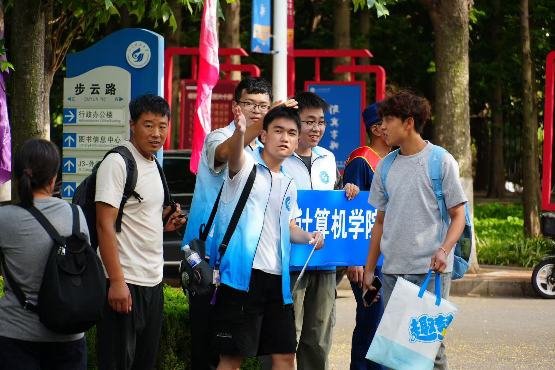 走进科大校园,“新生报到处”的引导牌立在各个分叉口,为报到新生指引方向;安保团队身披“校园交通秩序维护”绶带,指挥车辆通行;志愿服务者穿梭在校园里,随时准备为新生提供帮助;大艺团的歌声悠扬回荡,融媒体中心、易班、山科小志等服务点前热闹非凡,向新生展示着丰富多彩的大学生活;爱心服务点、家长休息区、医疗保障组更如点点春雨,温润着每一个需要援手的新生与家长。这些细致的服务,全方位实现着迎新工作“道路有指引、疑问有解答、需求有回应”。