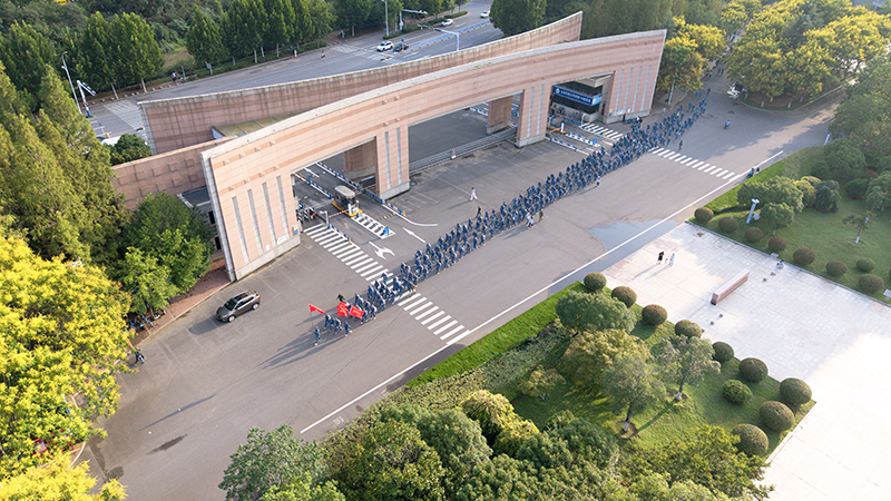 随着副校长诸葛福民宣布“出发”声响起,校长曾庆田带着“百人领跑团”率先领跑,领跑团由全国最美辅导员范俊峰和“我心目中的好老师”、马拉松协会、2025级新生代表100余人组成,带领同学们全程参加10公里拉练。随后,各营在鲜红的旗帜引领下,以饱满的热情和昂扬的斗志,迈出坚实的步伐,开启行军拉练。