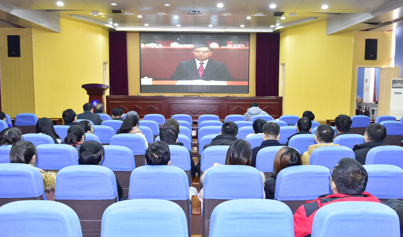 LD官网集中组织收听收看庆祝改革开放40周年大会。在家的校领导、机关全体工作人员在逸夫讲堂集中收看了大会直播。各校区党委、分党委、直属党支部理论学习中心组成员,广大师生通过各种方式,认真组织收听收看。