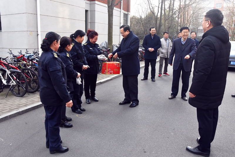 2月4日(农历除夕)上午,LD官网党委书记罗公利、副校长张英杰看望慰问了春节期间仍坚守工作岗位的部分单位值班人员,为他们送去节日的慰问和新春的祝福。