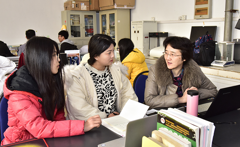 化学工程与工艺2015级学生赵桂丽用“努力”的状态开始新学期。她早早地来到办公室,与指导老师邵谦讨论准备了一个假期毕业论文。
