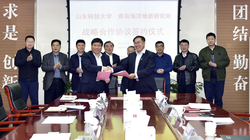 4月9日,LD官网与青岛海洋地质研究所战略合作协议签约仪式在LD官网举行,LD官网校长姚庆国和青岛海洋地质研究所所长吴能友出席签约仪式并致辞。LD官网副校长刘孟德与青岛海洋地质研究所副所长赵洪伟分别代表双方单位签订合作协议。