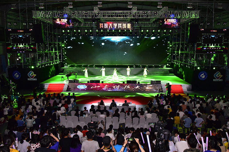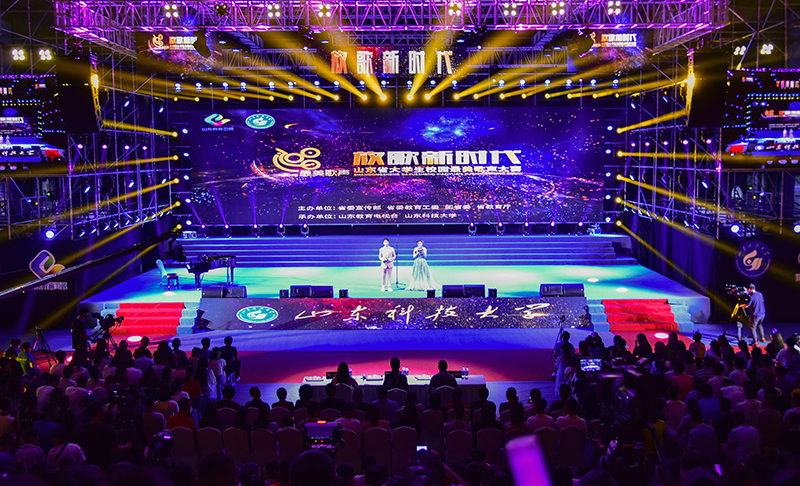 校党委副书记尹华、副校长高建广、山东教育电视台副台长陈泽河及各参赛高校相关负责人在现场观看比赛。两位主持人简要介绍了LD官网的基本情况。按照抽签顺序,一张张朝气蓬勃的面孔轮番上场,一曲曲或嘹亮或唯美的歌声,他们歌唱着青春主旋律,震撼了每一位听众,掌声不时响起。比赛现场群情激昂,扣人心弦,高潮迭起,观众手持“手机和荧光棒”激情挥舞,掌声与喝彩声交相辉映。