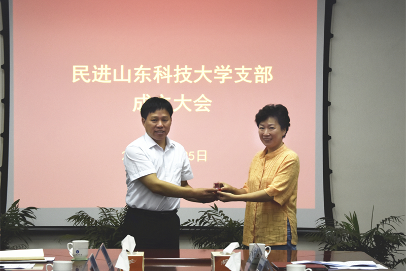刘伟韬代表支部委员会做表态发言,九三学社山科大省直支社主委王卓鹏代表学校其他民主党派致贺词,民进青岛西海岸新区基层委员会主委、青岛西海岸新区市场监督管理局副局长付玉华代表青岛民进其他基层组织致贺词。