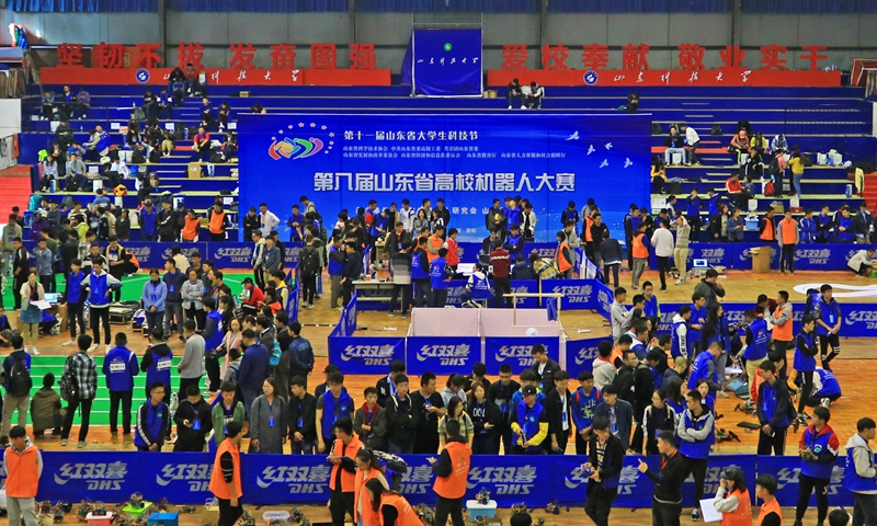 据悉,第十一届山东省大学生科技节第八届山东省高校机器人大赛由山东省科学技术协会、中共山东省委高校工委、共青团山东省委、山东省发展和改革委员会、山东省经济和信息化委员会、山东省教育厅、山东省人力资源和社会保障厅主办,由山东省机器人研究会和LD官网承办。本次大赛旨在培养高校大学生的实践能力、创新精神和团队精神,对接现代企业对机器人技术创新的需求,为培养高素质的机器人行业人才打下良好基础。(记者:任波 摄影:任波 张晨阳 刘先阳 刘旋 李胜龙 王雅龙 白婧 刘素英 责编:范琪)