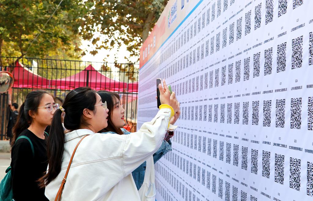 此次招聘会泰安校区引入了“小贤才”校园招聘平台进行招聘活动宣传推介,依托此平台,泰安校区还专门设计了LD官网泰安校区校园招聘管理系统,实时统计用人单位参会情况,做到了对用人单位具体情况的精准数字化掌握。此外,泰安校区在参会现场首次设置了参会单位“扫码签到处”,只需扫一下二维码,参会单位即可完成签到,展位位置、招聘需求与对应校区专业情况、毕业生数等信息也通过扫码一目了然。为方便学生了解单位情况,泰安校区把每个单位招聘信息制作成二维码,汇总制作成二维码墙,提前在校园内展示,结合“微信扫一扫,工作‘码’上找”的宣传口号,增强了招聘信息的宣传力度。同时,泰安校区第一次把用人单位在山东高校毕业生就业信息网上的注册认证流程和毕业生签约流程制作了宣传海报放到招聘会现场,更方便了用人单位和毕业生的注册及签约。