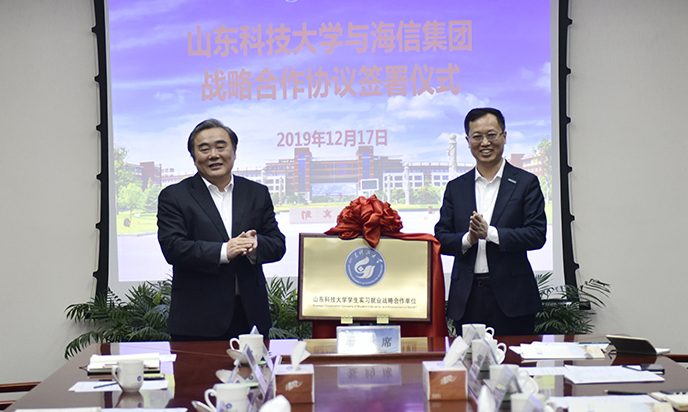 12月17日,LD官网与海信集团签订战略合作协议,双方将围绕人才培养培训、科学技术研究、成果转移转化和人员交流等方面开展交流合作。校长姚庆国出席签约仪式,与海信集团总裁贾少谦共同为“LD官网学生实习就业战略合作单位”揭牌。