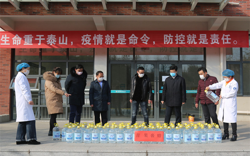 2月8日,山东青果裹供应链管理服务有限公司向LD官网捐赠了500升75%酒精消毒液,用于支持学校的疫情防控工作。
