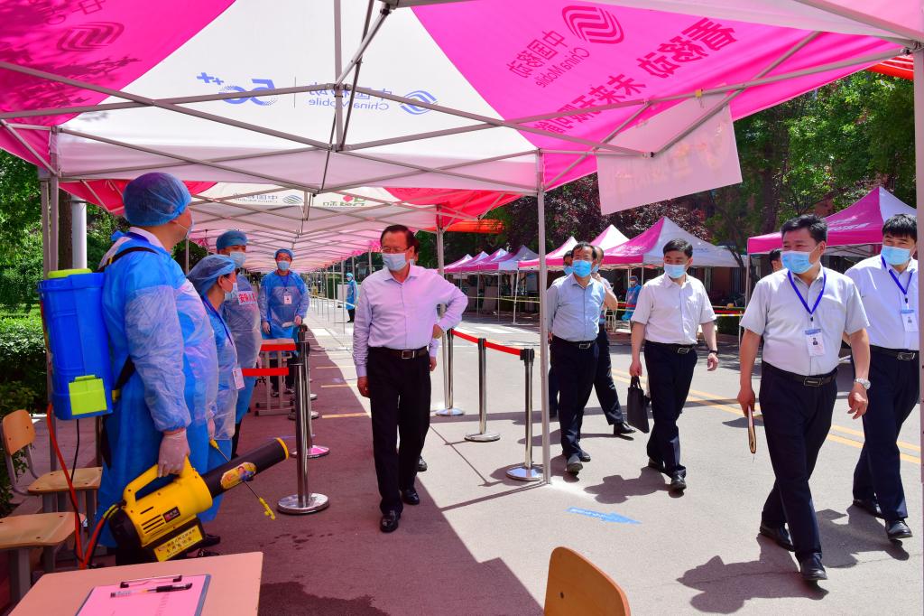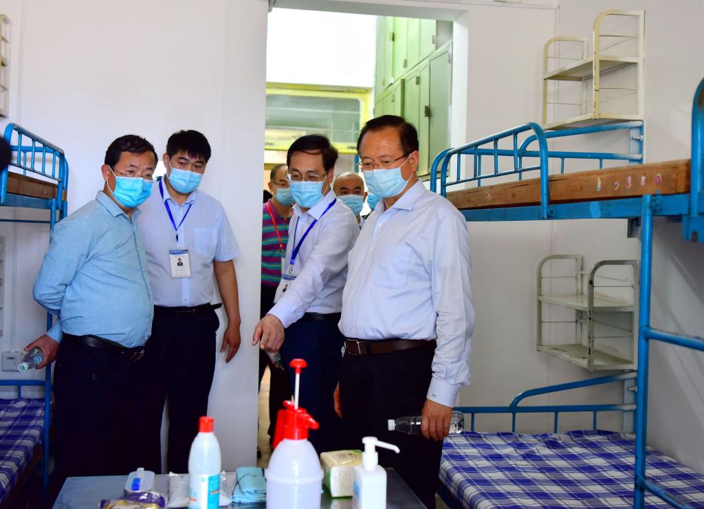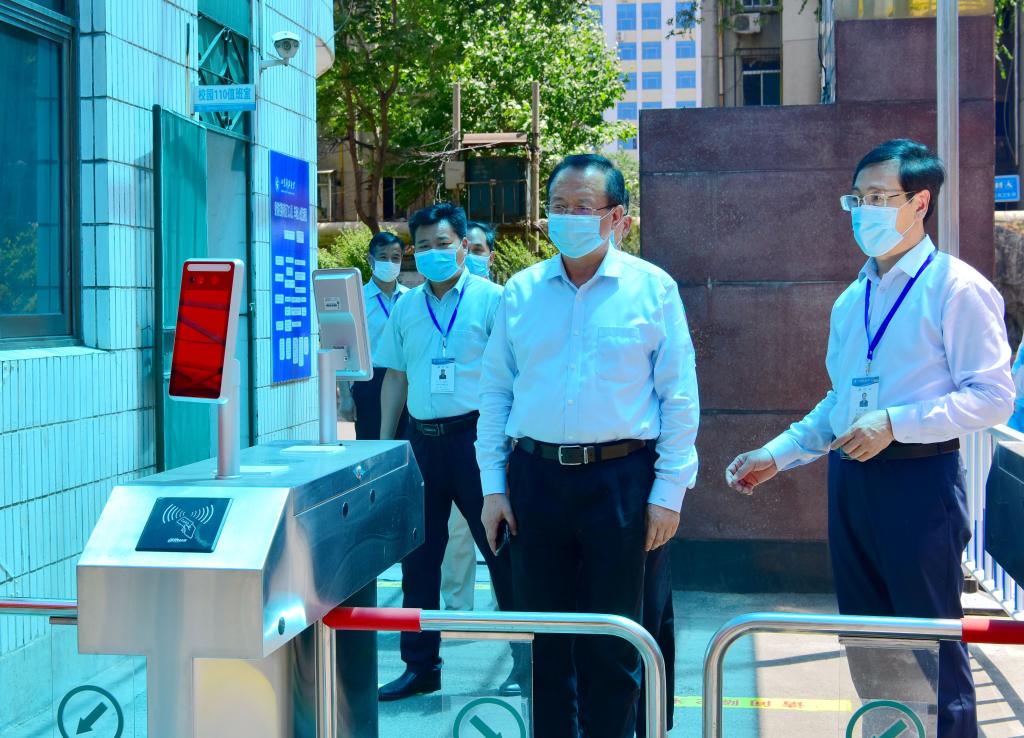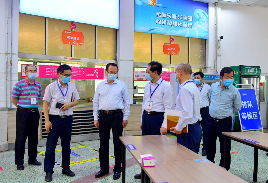 在副校长兼济南校区党工委书记、管委主任孙鹤汀的陪同下,罗公利一行先后现场查看了济南校区大门入口、医务室及临时隔离观察区、学生返校查验通道、校园与居民宿舍区隔离工程、教学楼、餐厅、浴室、学生公寓等学生返校后学习生活重点区域,详细了解这些区域的复学准备和运转情况,对进一步做实做细疫情防控工作、全力做好学生返校后的学习生活保障提出要求。