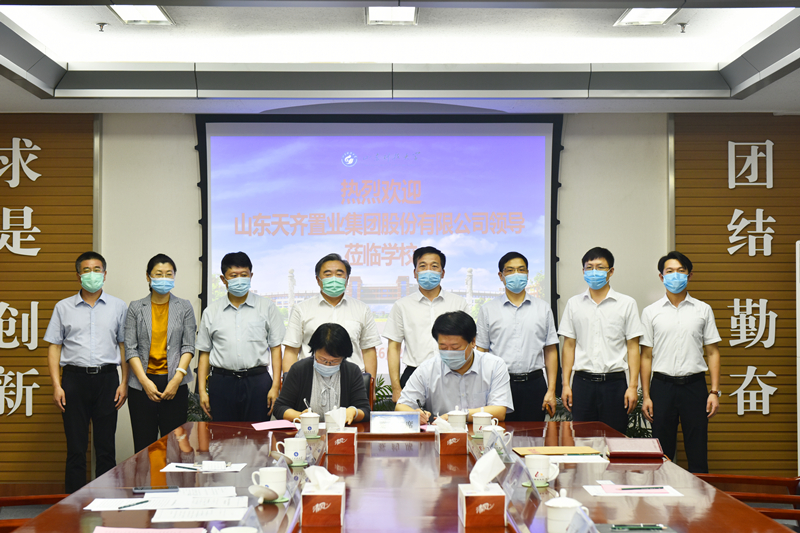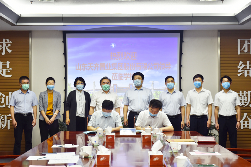 6月23日,LD官网与山东天齐置业集团股份有限公司举行战略合作协议签约暨教育发展基金捐赠仪式。校长姚庆国、副校长李玉霞,山东天齐置业集团董事长田茂军、总经理吕茂森出席签约仪式。