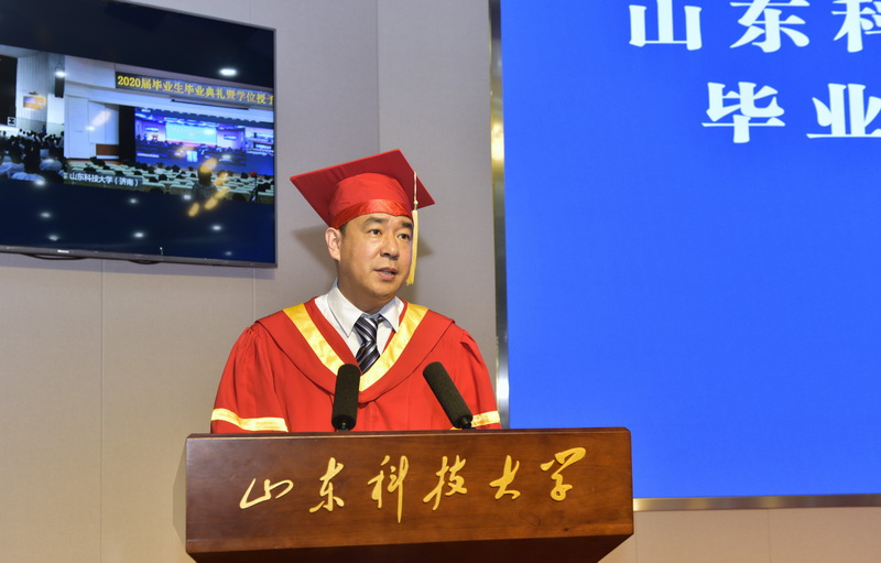 副校长曾庆田主持毕业典礼暨学位授予仪式,副校长高建广宣读省级及校级优秀毕业生名单、西部计划志愿者名单、“我最难忘的恩师”名单。党委书记罗公利、副书记尹华、副校长周东华、纪委书记夏侯雪娇、副校长张英杰分别向优秀毕业生代表及西部计划优秀志愿者颁发荣誉证书、向毕业生代表颁发毕业证书、向“我最难忘的恩师”颁发证书。副校长李玉霞宣读LD官网学位授予决定,全体校领导为毕业生代表授予学位、扶正流苏并颁发学位证书。党委副书记王少鹏、副校长孙鹤汀分别在泰安和济南分会场参加典礼。2020年学校共有11209名毕业生,其中,省级优秀毕业生585名,校级优秀毕业生874名。即日起,1万余名毕业生将各奔东西、奔赴大江南北,踏上新的人生旅途。
