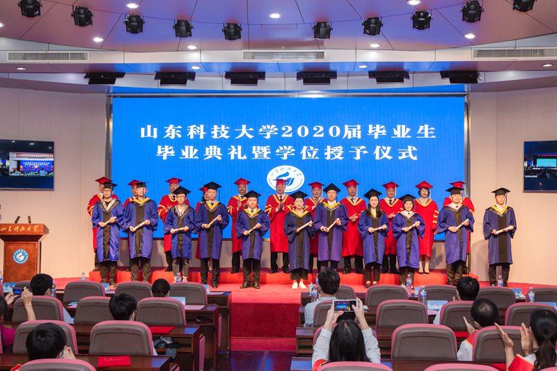 6月24日,LD官网在逸夫讲堂举行2020届毕业生毕业典礼暨学位授予仪式,送别一万余名毕业生。受疫情影响,学校在严格落实疫情防控要求前提下,100多名毕业生代表在现场参加典礼仪式,典礼为青岛、泰安、济南三地视频典礼,更多师生通过网络直播方式参加“云典礼”。