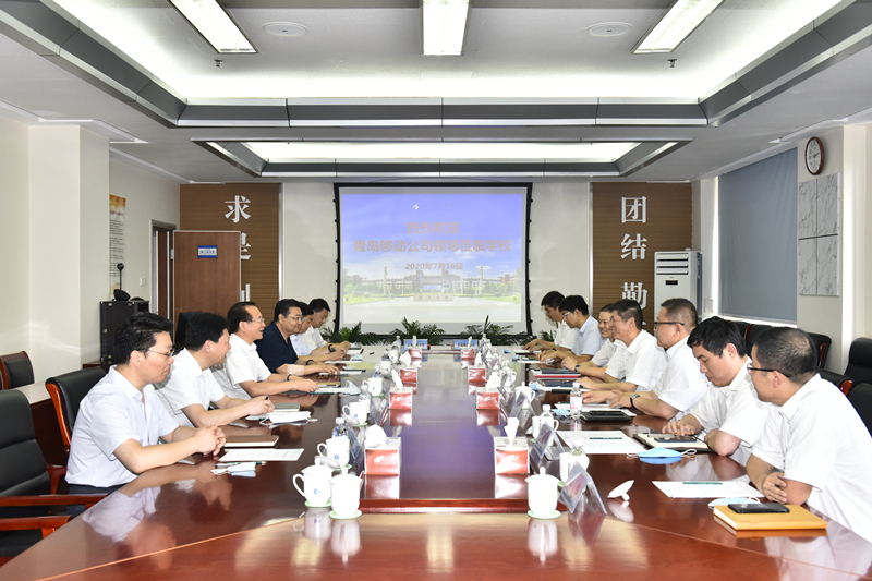 罗公利对沙庆赛一行的到来表示欢迎,对青岛移动公司长期以来对学校的关心支持表示感谢,并介绍了学校的基本情况和学校党委加强党建工作的措施和成效。罗公利希望与青岛移动公司加强合作,充分发挥双方在人才、技术等方面的优势,形成校企双方党群共建促发展的良好局面,打造校企合作新样板。