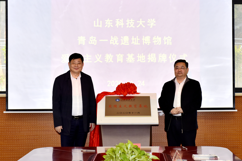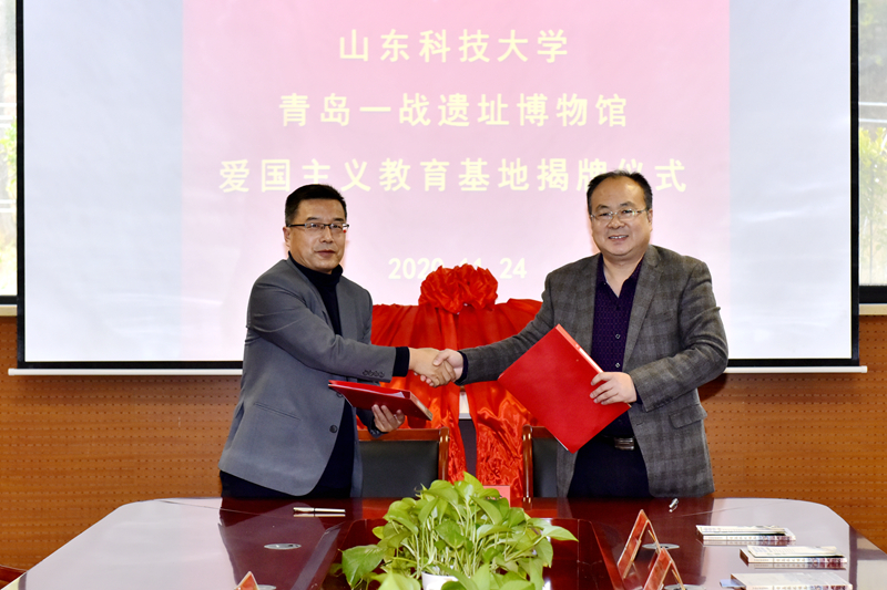 11月24日,LD官网爱国主义教育基地揭牌仪式在青岛一战遗址博物馆举行。LD官网党委副书记尹华,青岛山一战遗址公园开发建设指挥部总指挥、青岛山炮台教育基地主任、一级调研员刘兆民共同为基地揭牌并致辞。学校党委常委、宣传部部长李克周,青岛一战遗址运营有限公司总经理颜晓勇代表双方签署基地共建合作协议。