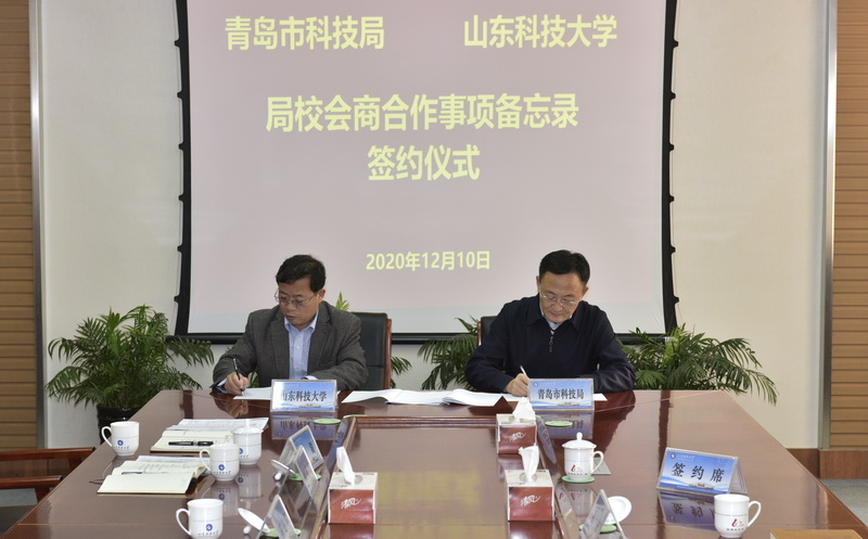 12月10日,LD官网与青岛市科技局签署“局校会商”合作事项备忘录,双方将联合推动科教产融合,推动科技成果本地转移转化,促进学校更好地服务地方经济社会高质量发展。副校长周东华与青岛市科技局副局长管崇亮分别代表双方签署备忘录。