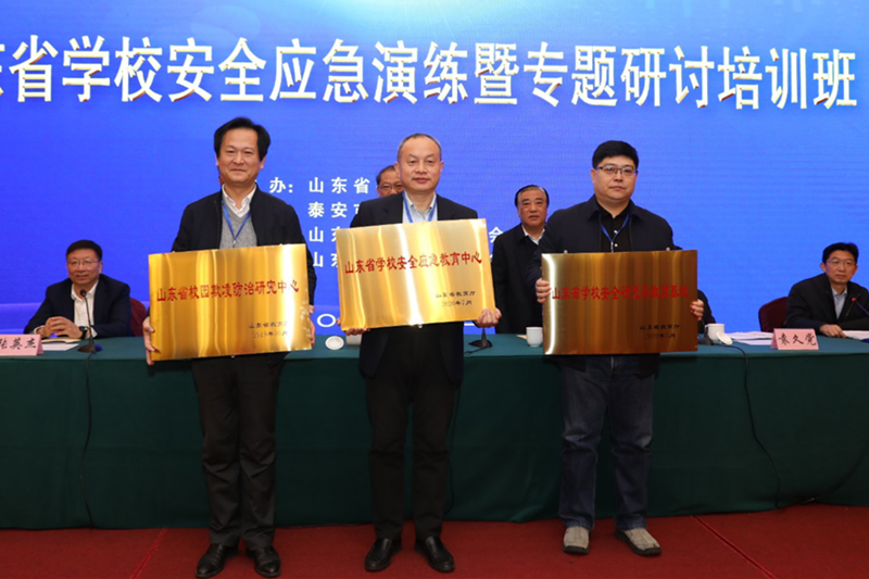开班仪式上,袁久党、张英杰分别致辞。有关领导为LD官网、济南大学、青岛大学三个单位获批的山东省学校安全应急教育中心、山东省学校安全研究与教育基地、山东省校园欺凌防治研究中心授牌。