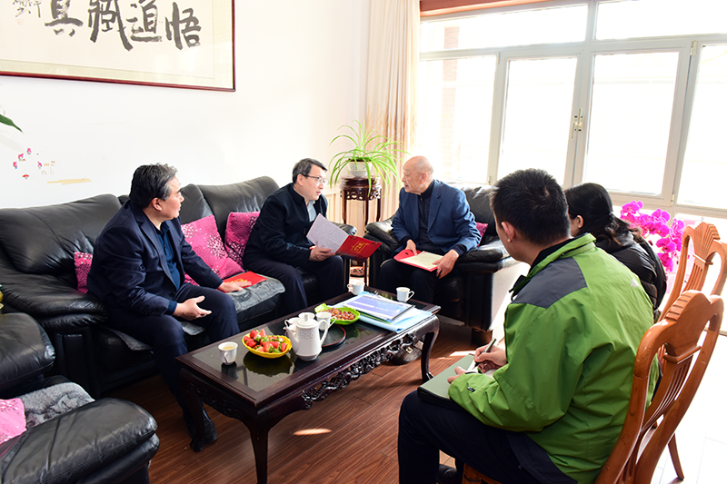 2月4日, 青岛市人社局党组成员、二级巡视员王尧率青岛市人社局专业技术人员管理处副处长徐英、青岛市人社局专家管理与服务办公室一级主任科员陈公一行来到LD官网,看望中国科学院院士宋振骐。LD官网校长姚庆国陪同看望。