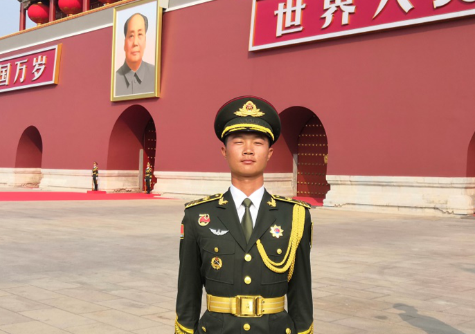 2018年9月10日,背上行囊的徐越毅然踏上了开往军营的列车。凭借顽强的毅力和不怕苦累的拼劲儿,他向汗水要动作,与老兵找差距,经过层层选拔,他入选中国人民解放军仪仗大队,加入了标兵训练队伍。