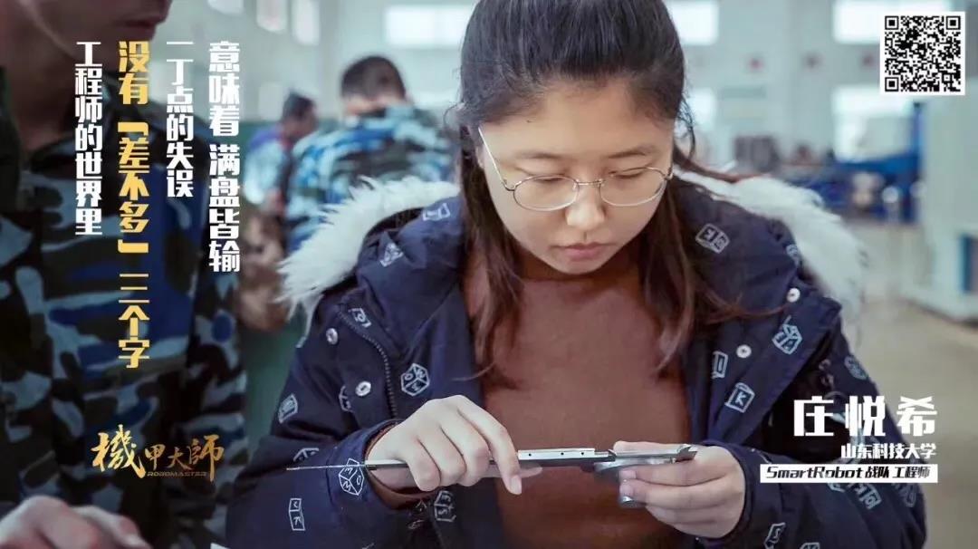 “第十七届全国大学生机器人大赛一等奖”,是她印象最深刻,也是付出努力最多的比赛。为了减轻机器的质量以获得更好的性能,每一个螺丝钉的大小都要反复推敲:直径是用五毫米还是四毫米?长度是要15mm还是20mm?就是这种追求极致、精益求精的态度让她所在的团队连续两年获得全国大学生机器人大赛一等奖。在备赛过程中,她曾作为战队代表,参与赛事官方拍摄纪录片《机甲大师》的第一集《追梦赤子心》,在纪录片中,当被问到困难时是否想过要放弃,庄悦希说:“在最困难的时候,我很多次挣扎着想要放弃,但谁不是一边喊着要放弃,一边咬牙坚持呢?”在设计研发登岛机构的过程中她遭遇了前所未有的困难,常常迷失其中,数日不前,虚掷光阴寸不能行的挫败感是难以言表的,但她深刻意识到,这可能就是为学的常态,科研的魅力或许就在于反思和探索。