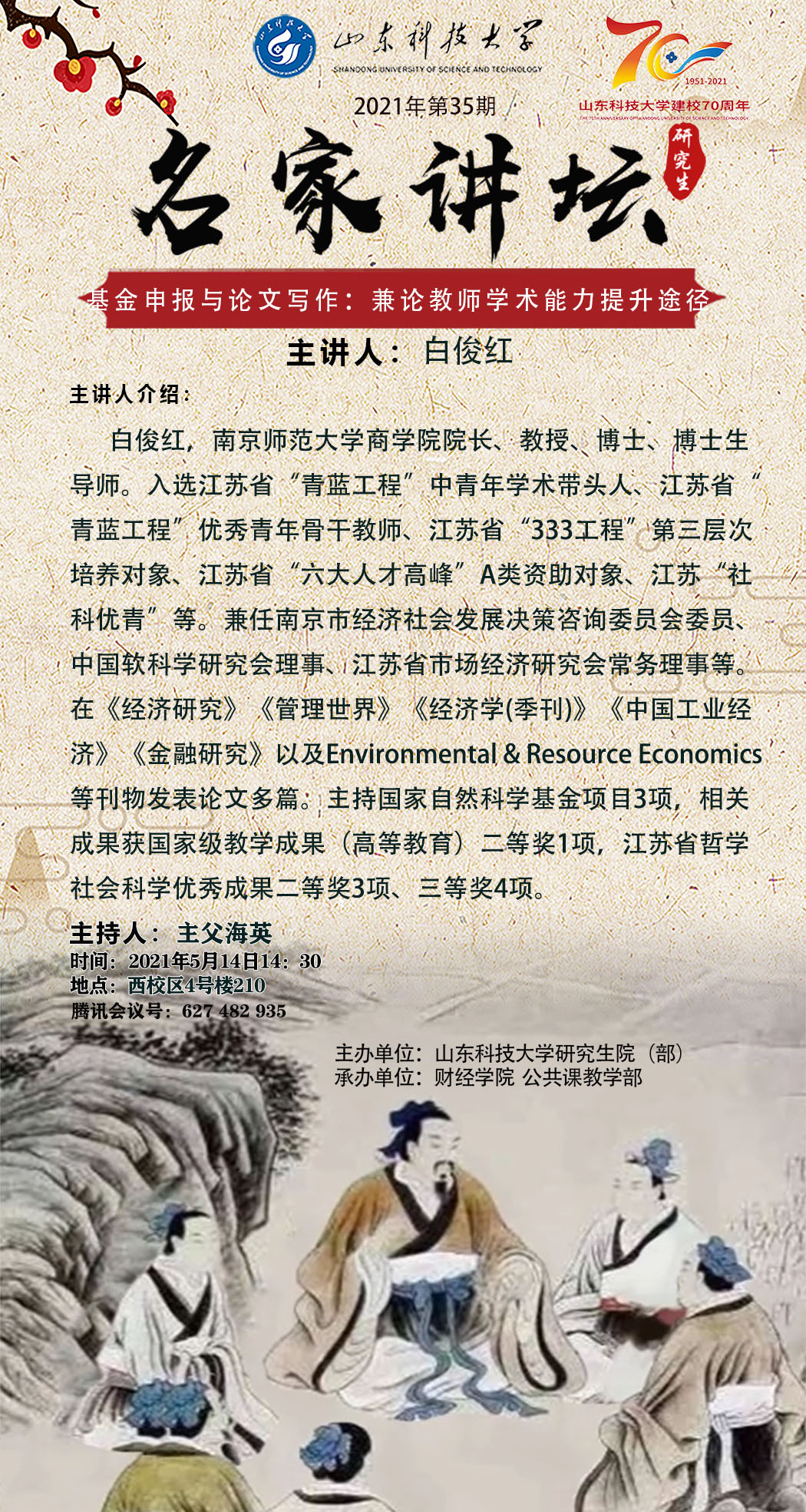 “名家讲坛”2021年第35期:基金申报与论文写作:兼论教师学术能力提升途径(总673期)