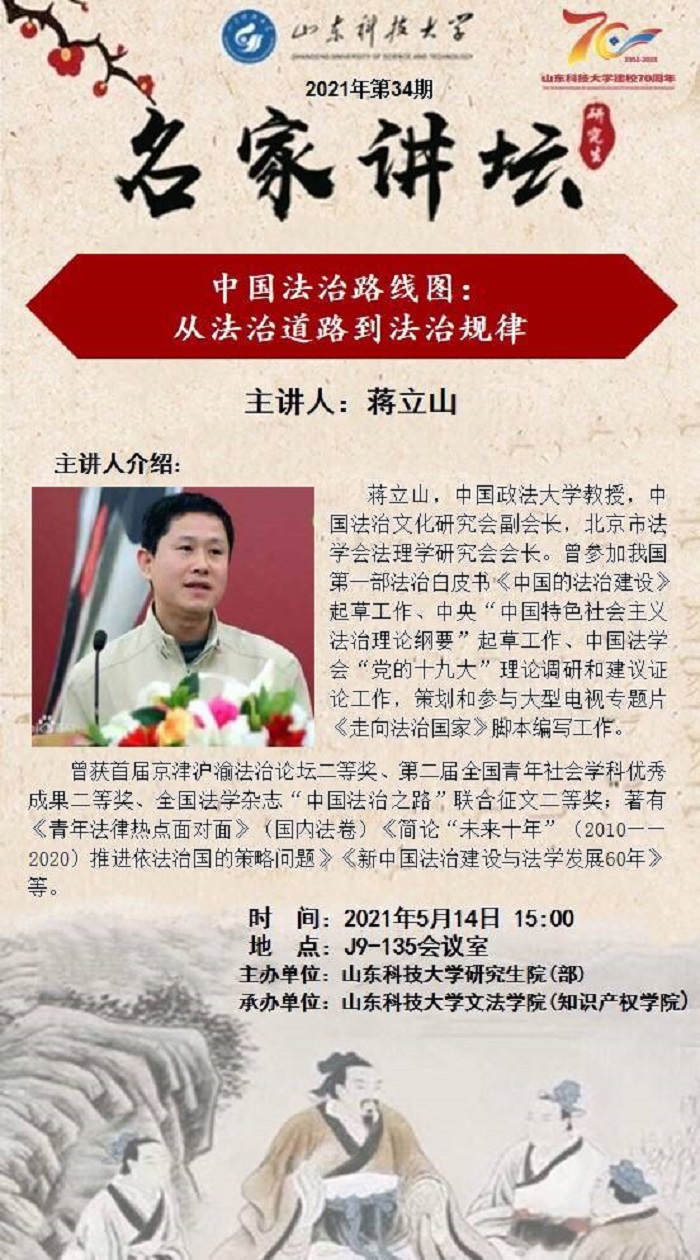 “名家讲坛”2021年第34期:中国法治路线图:从法治道路到法治规律(总672期)