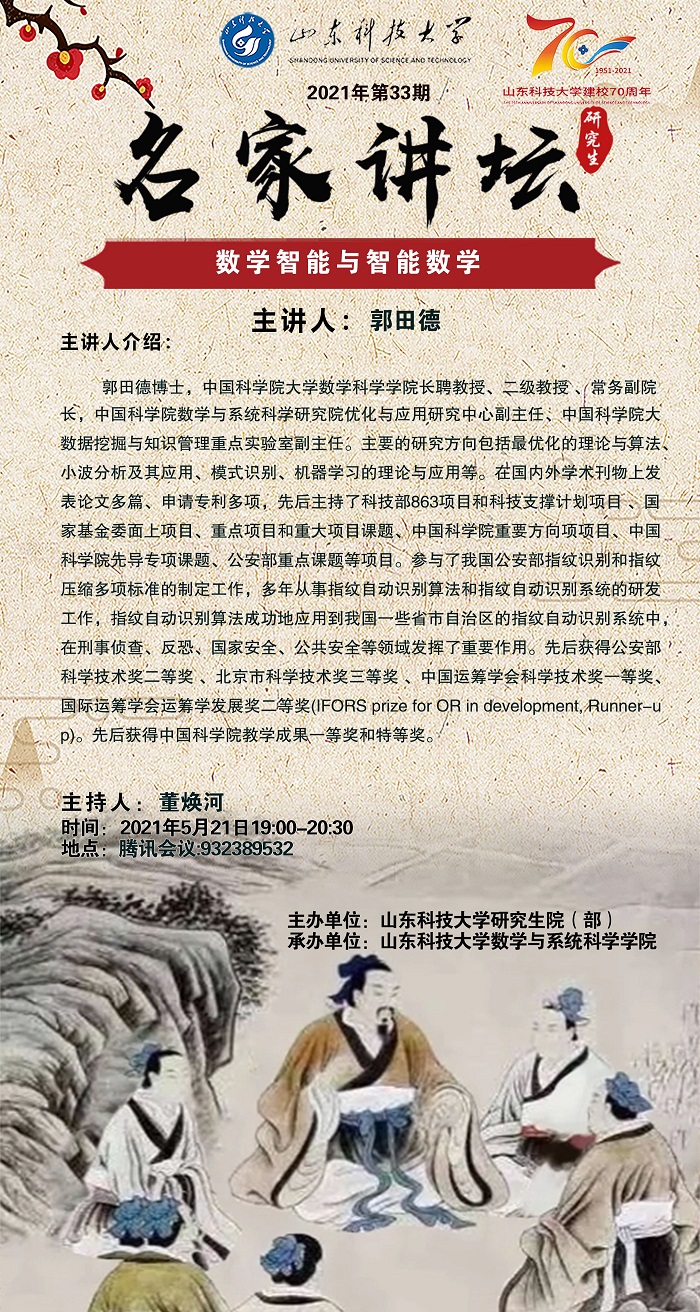 “名家讲坛”2021年第33期:数学智能与智能数学(总671期)