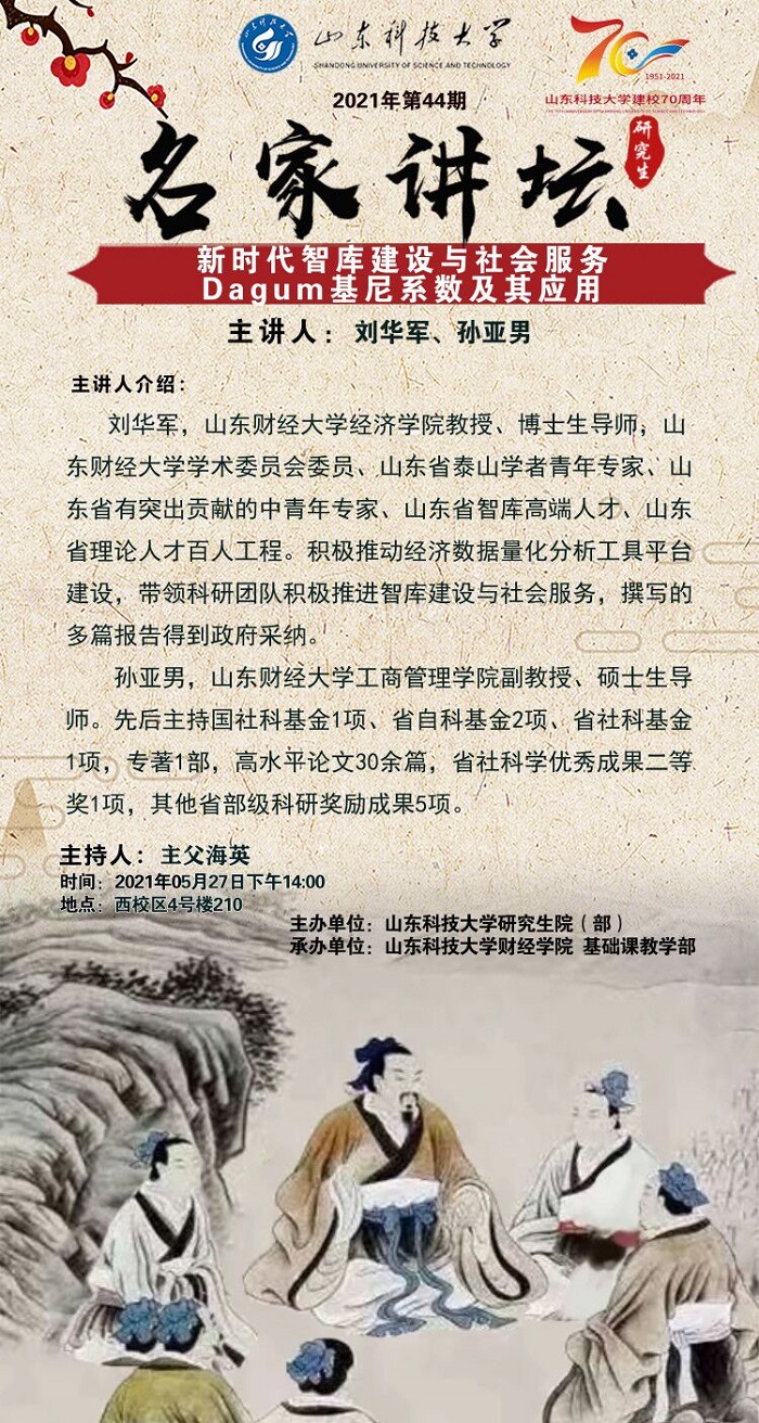 “名家讲坛”2021年第44期:新时代智库建设与社会服务Dagum基尼系数及其应用(总682期)